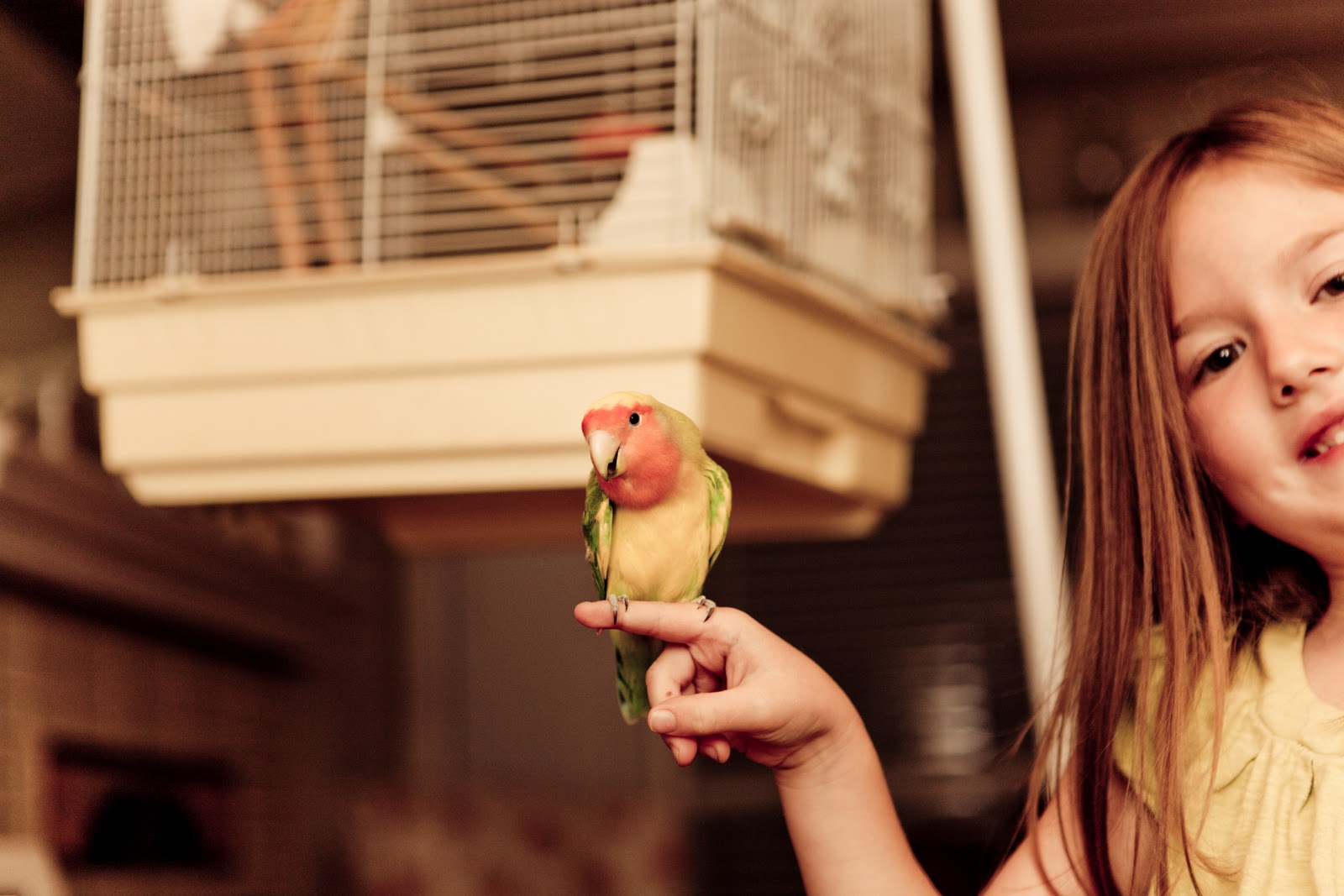 Our dear friend Katie puts a word in at Petco, because she used to work there. Simply asking if they would keep an eye out for a nice bird that can be held. Time goes by. Shai asks about a pet everyday. She starts randomly crying about the dog that she had, that needed to go to a new home. My heart breaks for her. But what can I do right now?…Not really anything. That's ok, I don't have to. Katie gets a call from Petco. They have a bird. He likes to be held. She goes and checks him out. He rides to our house on HER SHOULDER. He is stunning, kind, adorable, mellow, and does not bite my children.